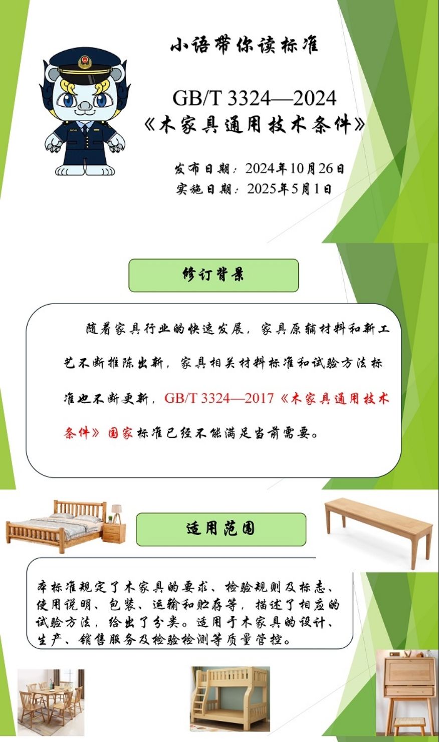 10月26日,国家市场监督管理总局(国家标准化管理委员会)修订发布《木家具通用技术条件》(GB/T 3324—2024)推荐性国家标准,将于2025年5月1日正式实施。