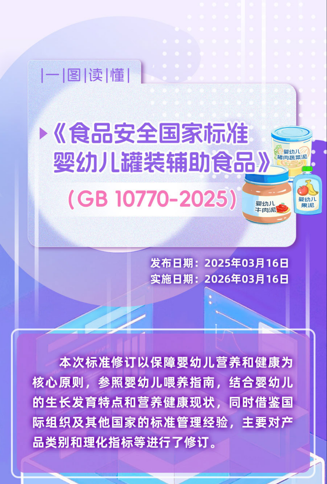 3月16日,GB 10770-2025《婴幼儿罐装辅助食品》正式发布,并将于2026年3月16日正式实施。