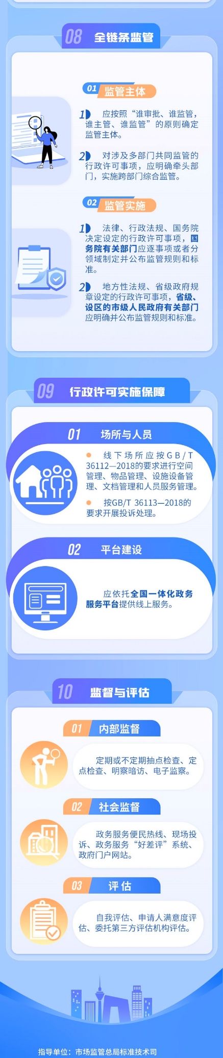本标准规定了行政许可事项清单管理、实施规范编制、办事指南编制、行政许可实施、全链条监管、实施保障、监督与评估等方面的要求,适用于各级审改牵头机构、行政许可事项主管部门和实施机关开展的行政许可相关管理和实施工作。本次标准的制定,有利于以标准规范审批行为、提高审批效率、优化审批服务,进一步推进行政许可标准化、规范化、便利化。