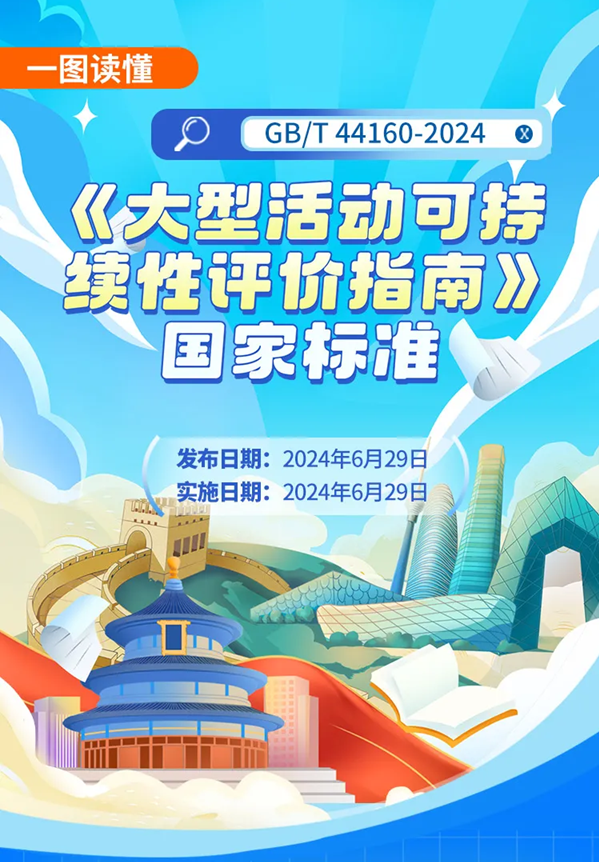 6月29日,国家市场监督管理总局(国家标准化管理委员会)批准发布《大型活动可持续性评价指南》(GB/T 44160-2024)推荐性国家标准,该标准已于2024年6月29日正式实施。标准文本可在全国标准信息公共服务平台(https://std.samr.gov.cn/)和浙江标准在线(https://bz.zjamr.zj.gov.cn/)进行检索查阅。