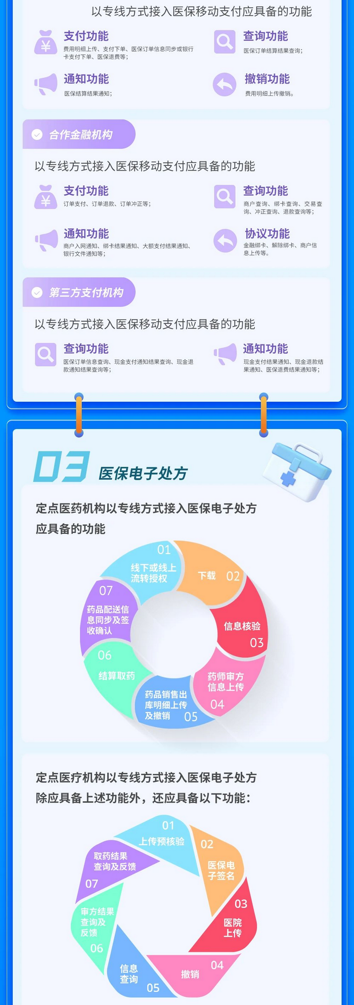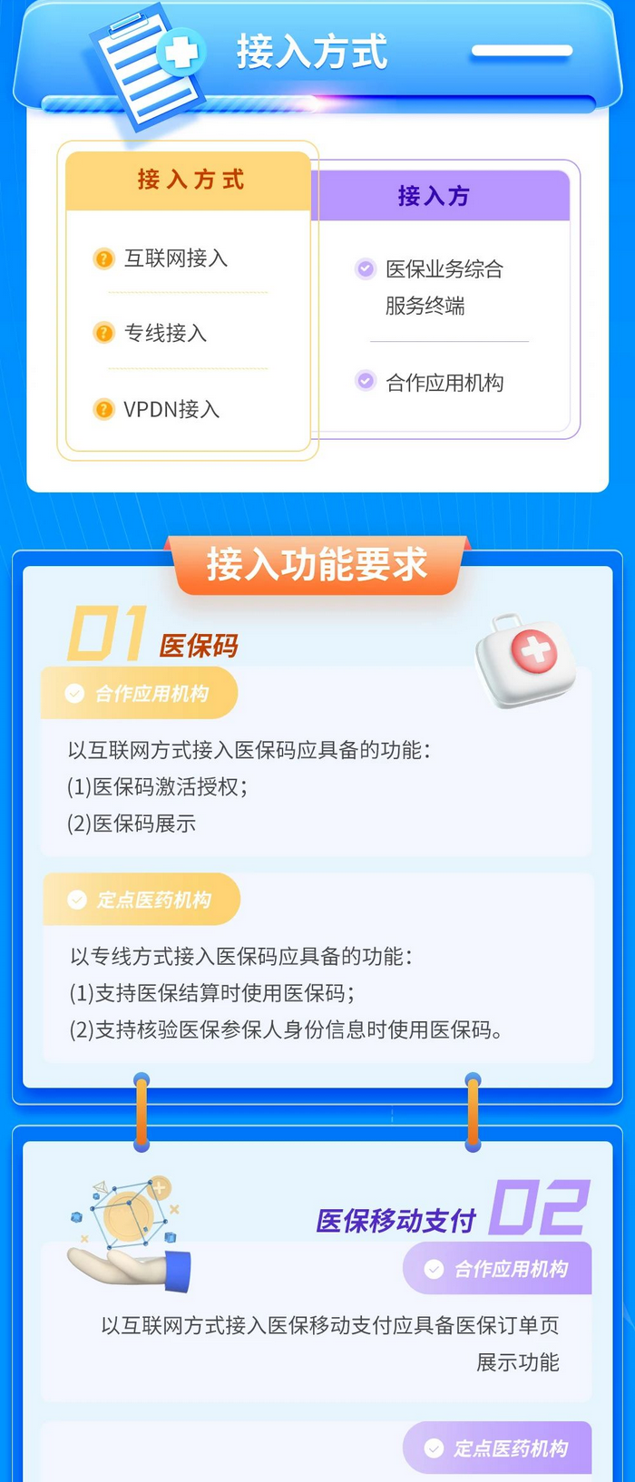 《医疗保障信息平台 便民服务相关技术规范》在医疗保障信息平台工程实践的基础上研究制定,核心技术要求已在全国大规模应用,科学性、实用性和普适性经过充分验证,适用于定点医药机构、合作金融机构、第三方支付机构、政务服务部门和其他机构等合作应用机构。标准规定了医保码(医保电子凭证)、医保移动支付、医保电子处方、个人医保信息授权查询等医疗保障信息平台便民服务的接入方式、接入功能要求、性能要求和安全要求。