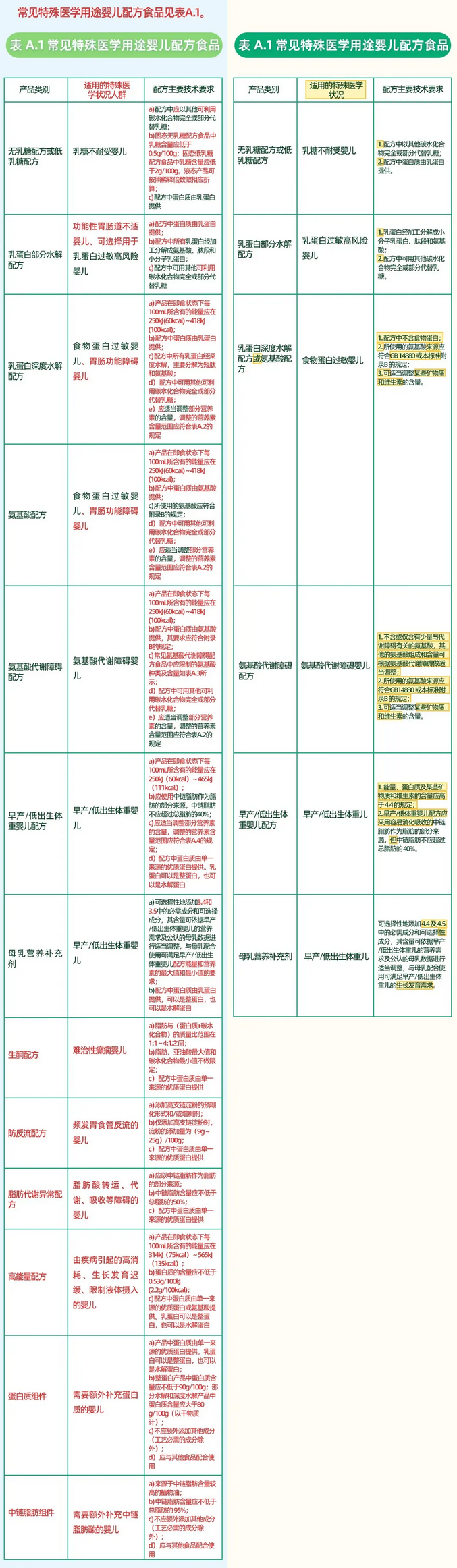 本次标准是在2010年版本的基础上进行修订,新增了6个产品类别,分别是生酮配方、防反流配方、脂肪代谢异常配方、高能量配方、蛋白质组件和中链脂肪组件。新增产品主要服务于患有难治性癫痫、生长发育迟缓、脂肪酸代谢吸收障碍等特殊医学状况的婴儿,同时也覆盖了患有部分罕见病的婴儿群体。