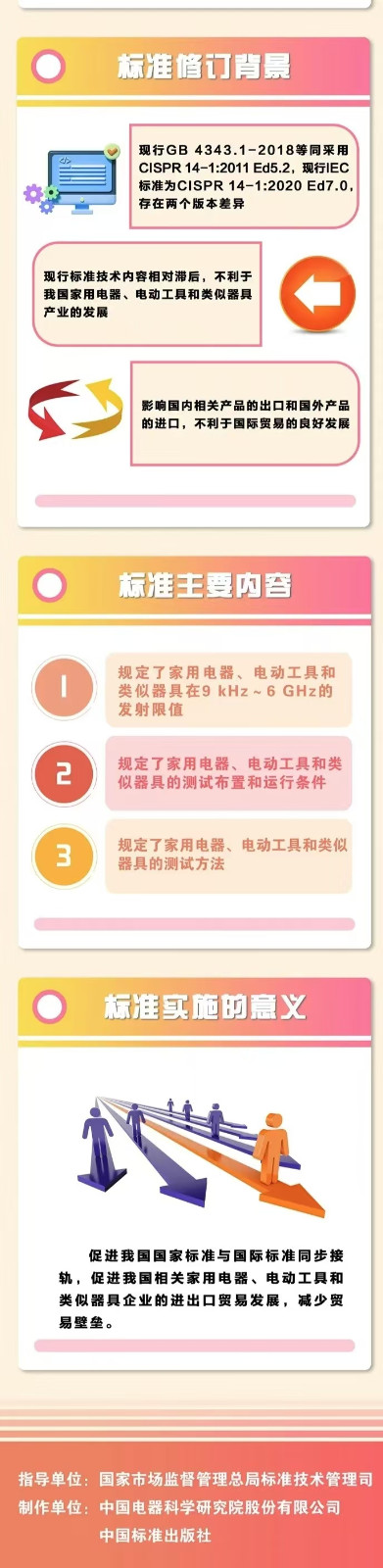 5月28日,国家市场监督管理总局(国家标准化管理委员会)修订发布了《家用电器、电动工具和类似器具的电磁兼容要求 第1部分:发射》(GB 4343.1—2024)强制性国家标准,将于2026年6月1日正式实施。