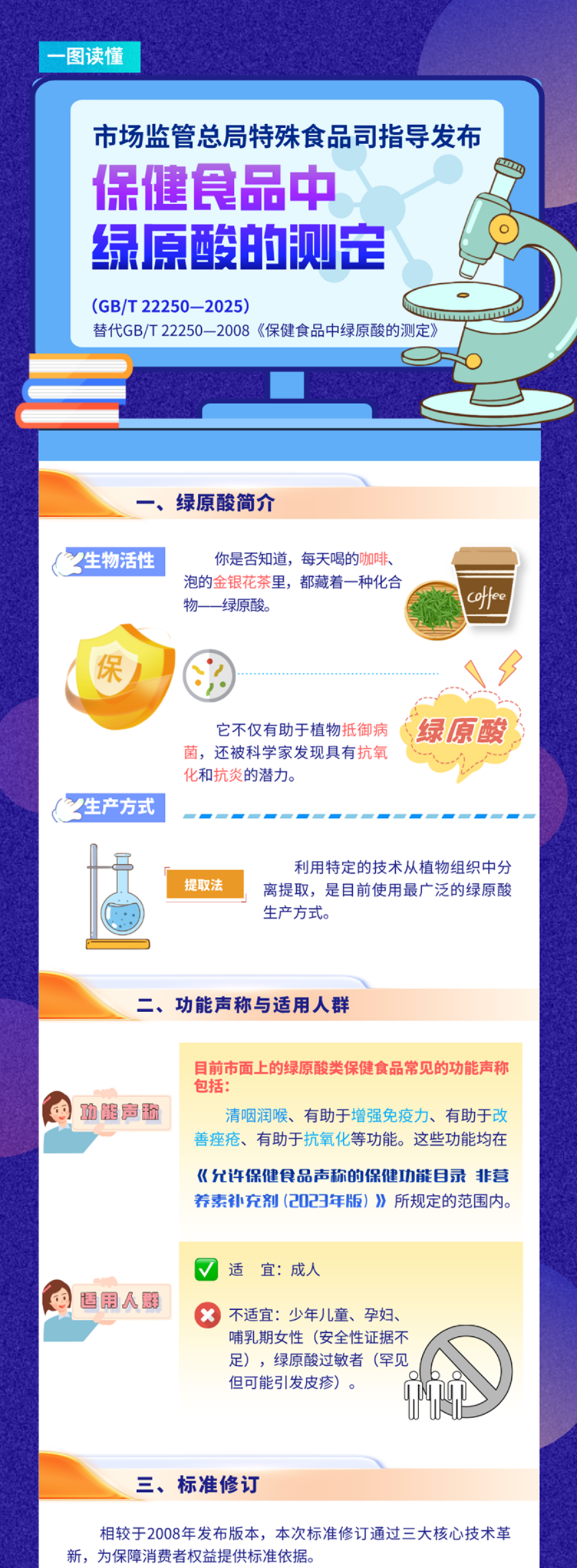 3月28日,GB/T 22250-2025《保健食品中绿原酸的测定》正式发布,并已于2025年10月1日正式实施。