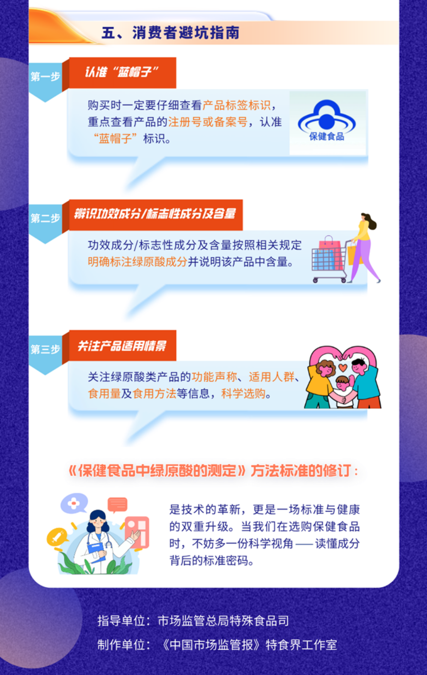 该标准是在2008年发布版本的基础上进行修订,本次标准修订通过三大核心技术革新,为保障消费者权益提供标准依据。一是突破原料适用范围局限,拓展对多种保健食品原料基质的适用范围,提升方法的通用性与实用性,更好地满足当前市售产品多样化的发展需求;二是完善标准化操作流程,补充并明确相关试剂配制与试样处理的技术要求,有效保证实验操作的一致性与可重复性;三是优化检测条件降低试样中杂质的干扰,提升检测结果的准确性。此次标准迭代升级既能为监管绿原酸相关保健食品提供有力支持,又能推动保健食品行业规范发展,让市场运行更加有序。