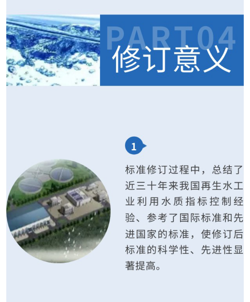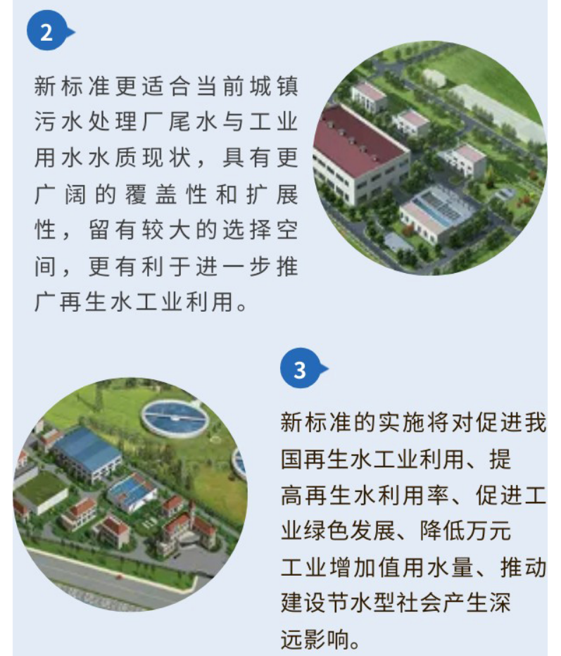 本次标准的修订,更适合当前城镇污水处理厂尾水与工业用水水质现状,具有更广阔的覆盖性和扩展性,留有较大的选择空间,更有利于进一步推广再生水工业利用。