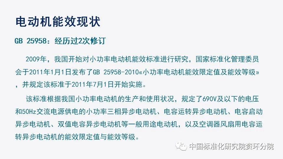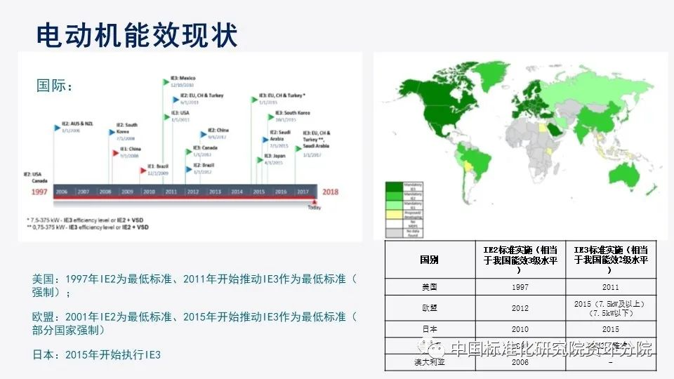 2020年6月1日,国家市场监督管理总局(国家标准化管理委员会)发布了《电动机能效限定值及能效等级》(GB 18613-2020)强制性国家标准。该标准修订整合了原强制性国家标准《中小型三相异步电动机能效限定值与能效等级》(GB 18613-2012)和《小功率电动机能效限定值与能效等级》(GB 25958-2010)2项强制性能效标准,并已于2021年6月1日实施。