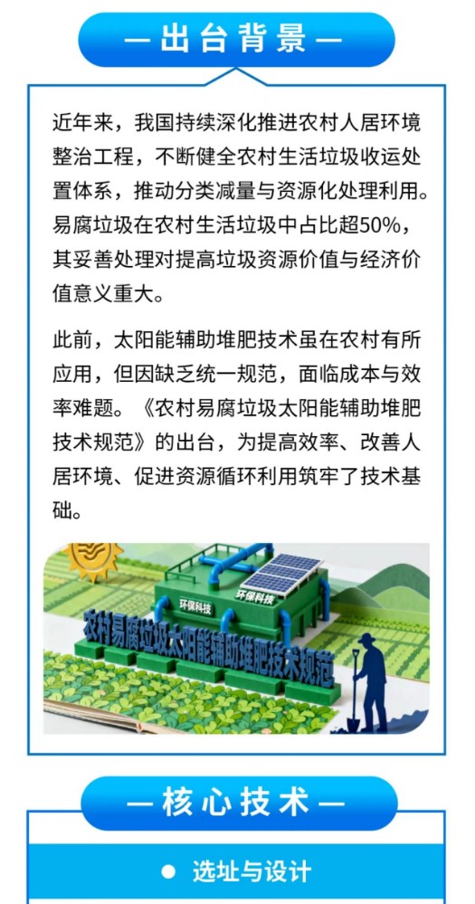 一图读懂 | GB/T 46111-2025《农村易腐垃圾太阳能辅助堆肥处理技术规范》发布, 守护乡村生态底色