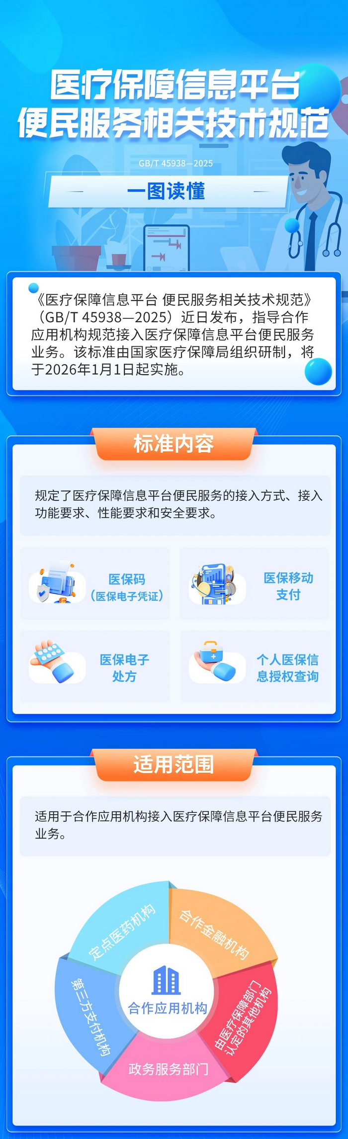 6月30日,GB/T 45938-2025《医疗保障信息平台 便民服务相关技术规范》将于2026年1月1日正式实施。