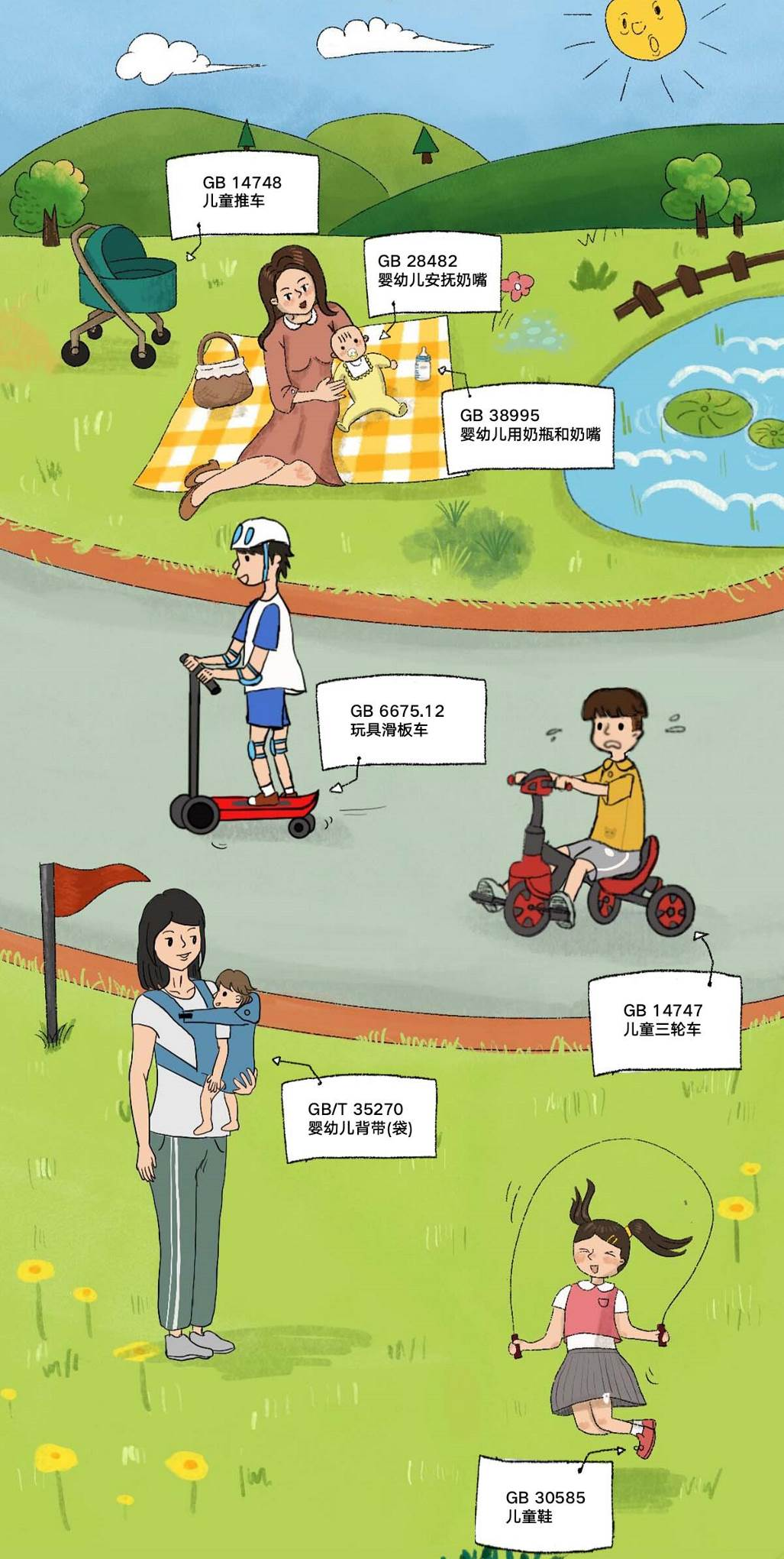在日常生活当中,国家标准扮演着“儿童守护者”的角色,一直“默默地”守护在儿童身边。目前,我国共制定发布婴童用品相关国家标准150余项,较为全面地覆盖了衣、食、住、行,户外活动、居家生活、校园学习等各个领域,全方位为儿童健康成长“保驾护航”。